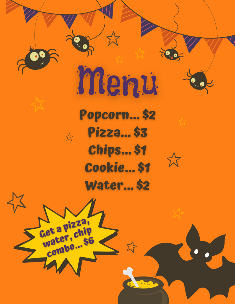 • Food will be available for purchase (see menu below).